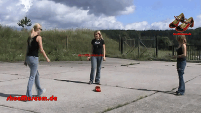 Mistresses went looking for a man they had lent money to. The man had been avoiding them like a plague, and it was about time they taught him a lesson. They asked around and were directed to where he was and ambushed him. He had nowhere to run to and had to surrender to them. The mistresses found him working on a new car toy and they took and started crushing it with their shoes to pieces.